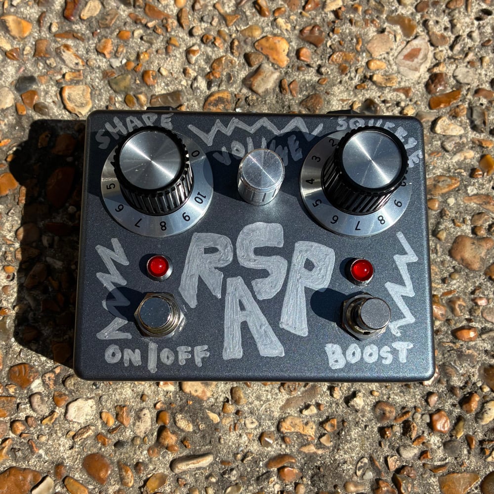 The Rasp is a thick gritty germanium fuzz with a shape knob to dial in low and high frequencies and an extra boost function built in series in front of the fuzz to push it to its limits - crushing the signal into a fizzy mess that swells in and out depending on how much you dial up the squeeze knob